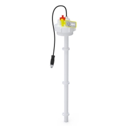 Schraubkappe für verschiedene Fassgewinde, mit frei drehbarem Einsatz aus PTFE. Die integrierte Messlanze überwacht das Flüssigkeitsniveau und verhindert, dass ein Restvolumen von etwa 10 % unterschritten wird. Sobald das Füllniveau unter die Messlanze fällt, löst der kapazitive Sensor ein Signal aus, das am angeschlossenen Mini-Display ausgegeben wird. So wird ein unbemerkter Leerlauf der Fässer verhindert und ein rechtzeitiger Fasswechsel ist möglich.